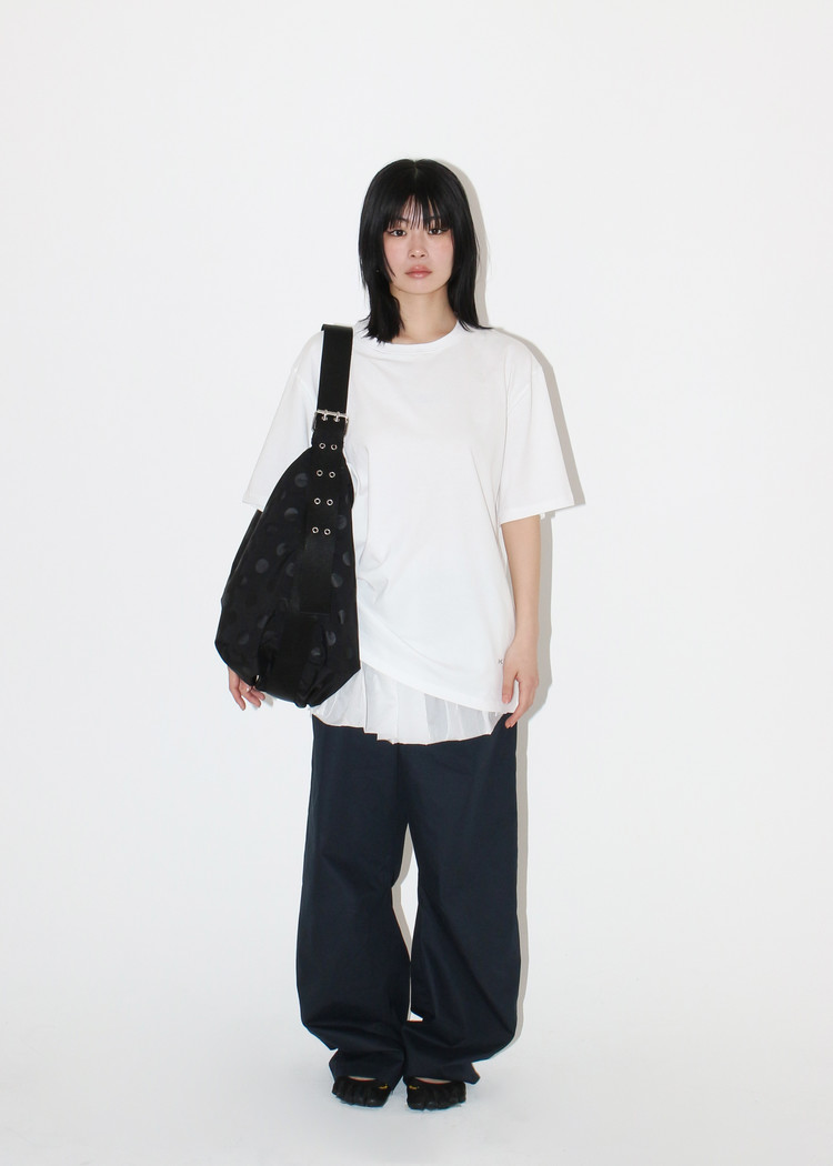 The strap length can be adjusted with an eyelet buckle, allowing for 2-way styling — shoulder or crossbody.