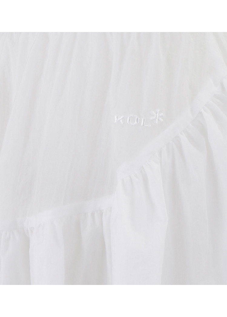 A summer skirt crafted from bright yarn fabric that shimmers subtly as it catches the light.