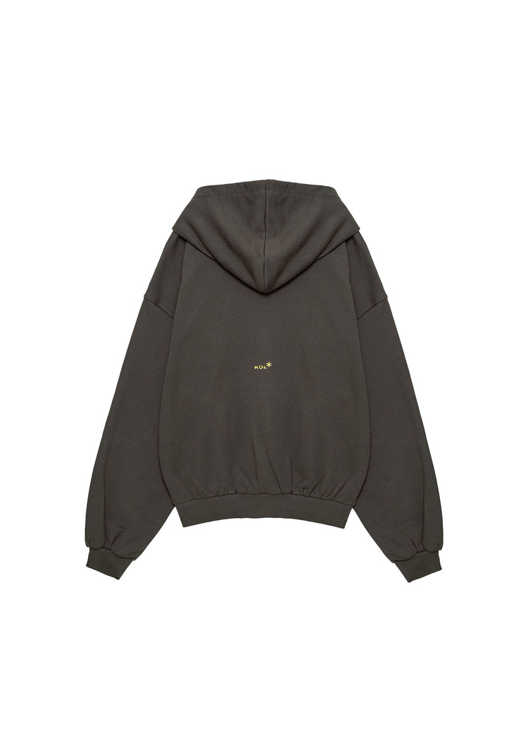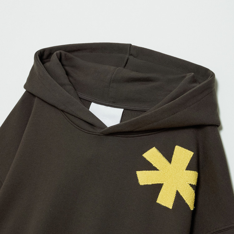 A cleanly designed hoodie with a yellow asterisk patch placed on the upper left front.