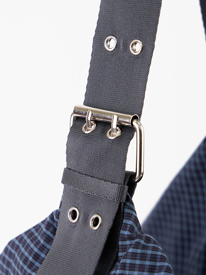 The strap length can be adjusted with an eyelet buckle, allowing for 2-way styling — shoulder or crossbody.